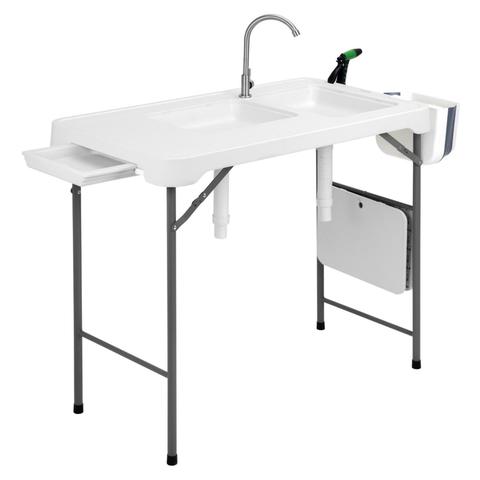 Table de nettoyage des poissons avec des éviers dans le jardin ou en plein air.